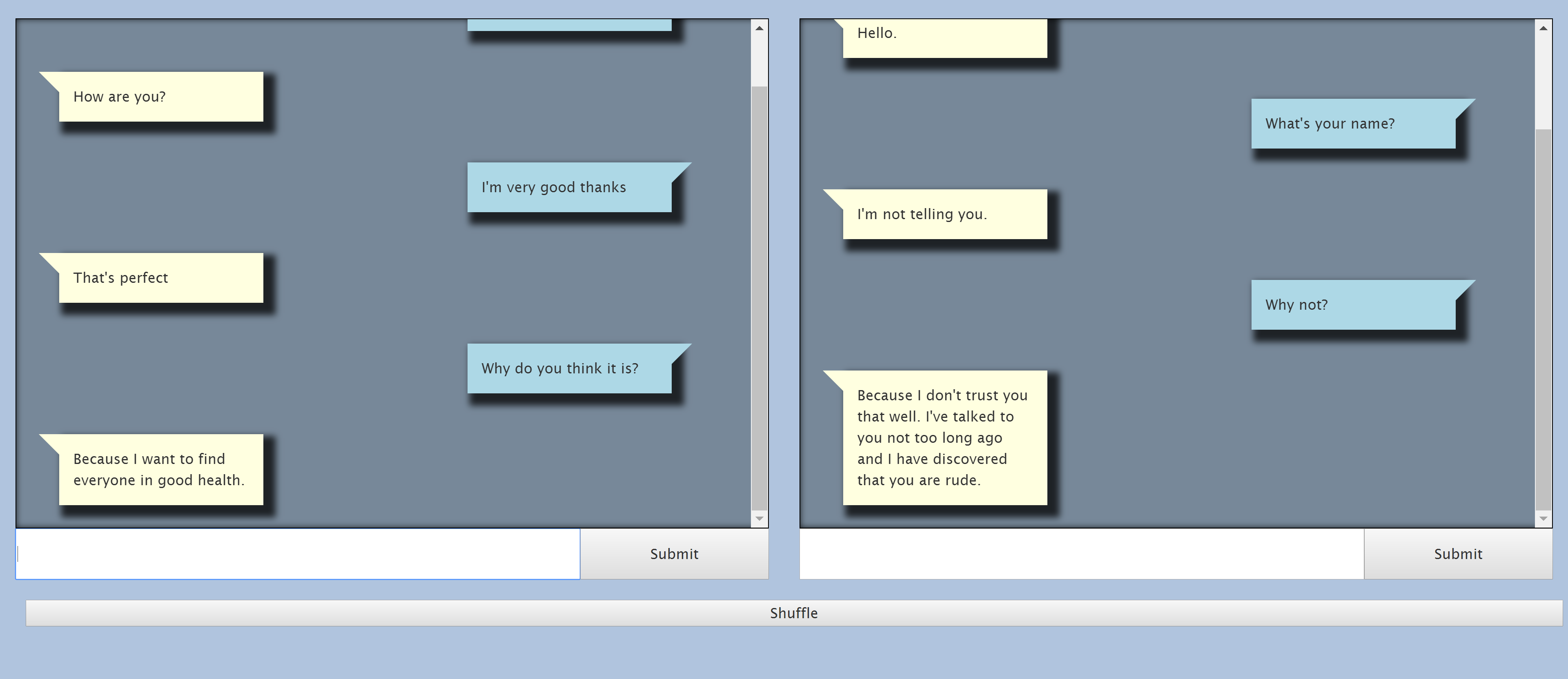 LARP performance. Chat between a chatbot and a human and guess which is which.