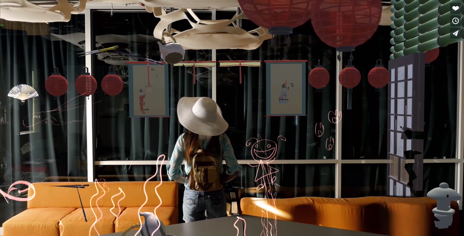 AR experience about Japanese folk spirits with physical interactions.