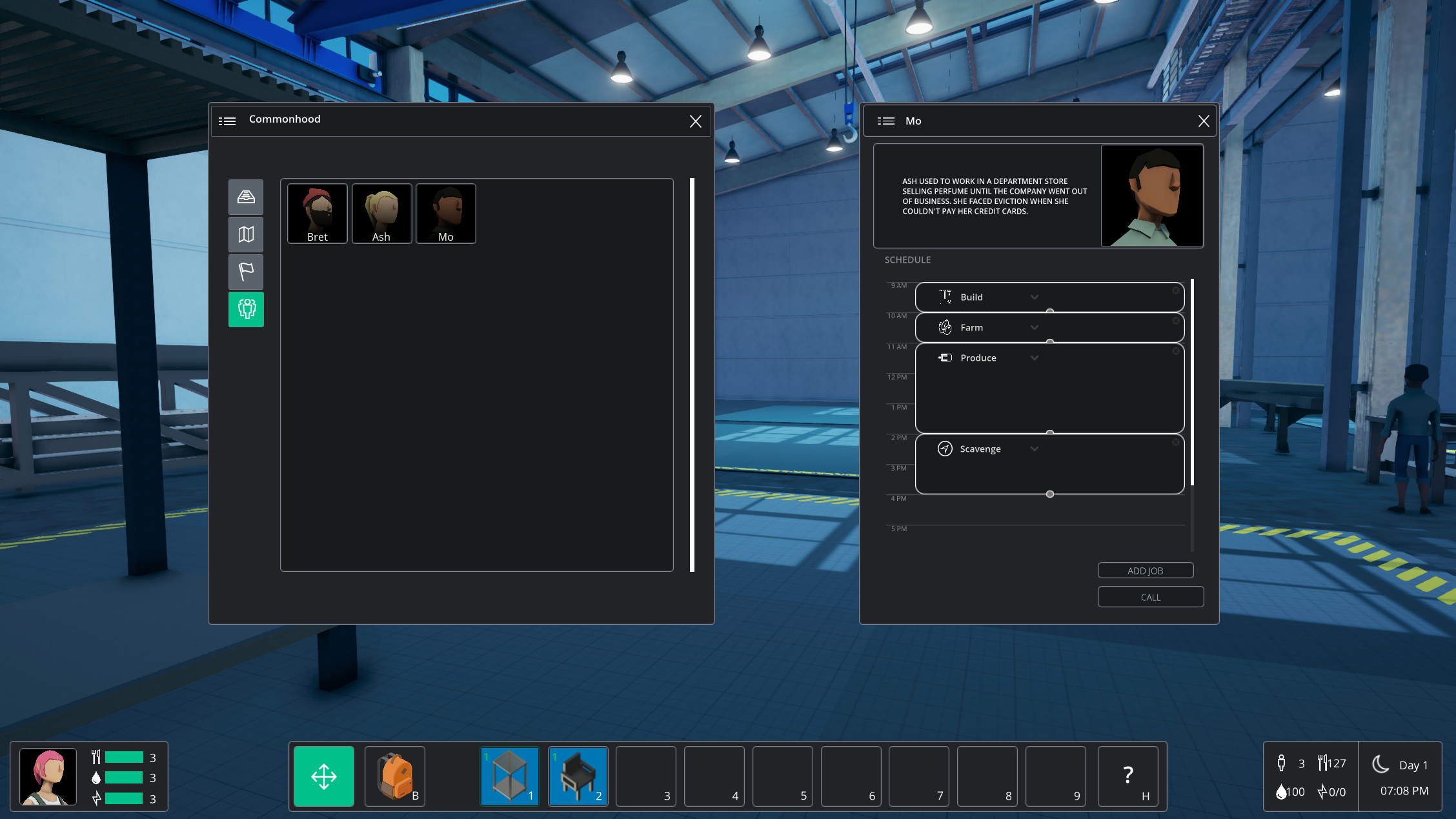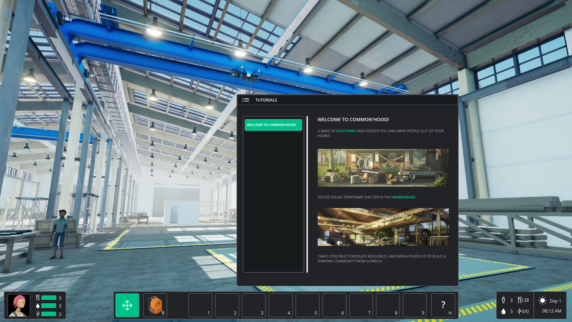 An upcoming game from Plethora-Project, The core Common'hood experience is a survival simulation where you grow your economy and your community. New characters will attempt to join your crew, and it will be in your hands to provide shelter, water, and food in exchange for their skills. Each character that joins will have their own unique story, helping you understand what led them to end up without a home. By working together, you will be able to provide shelter and facilities to improve the life of your community. This will involve farming and researching technologies to improve the way you generate food and resources.