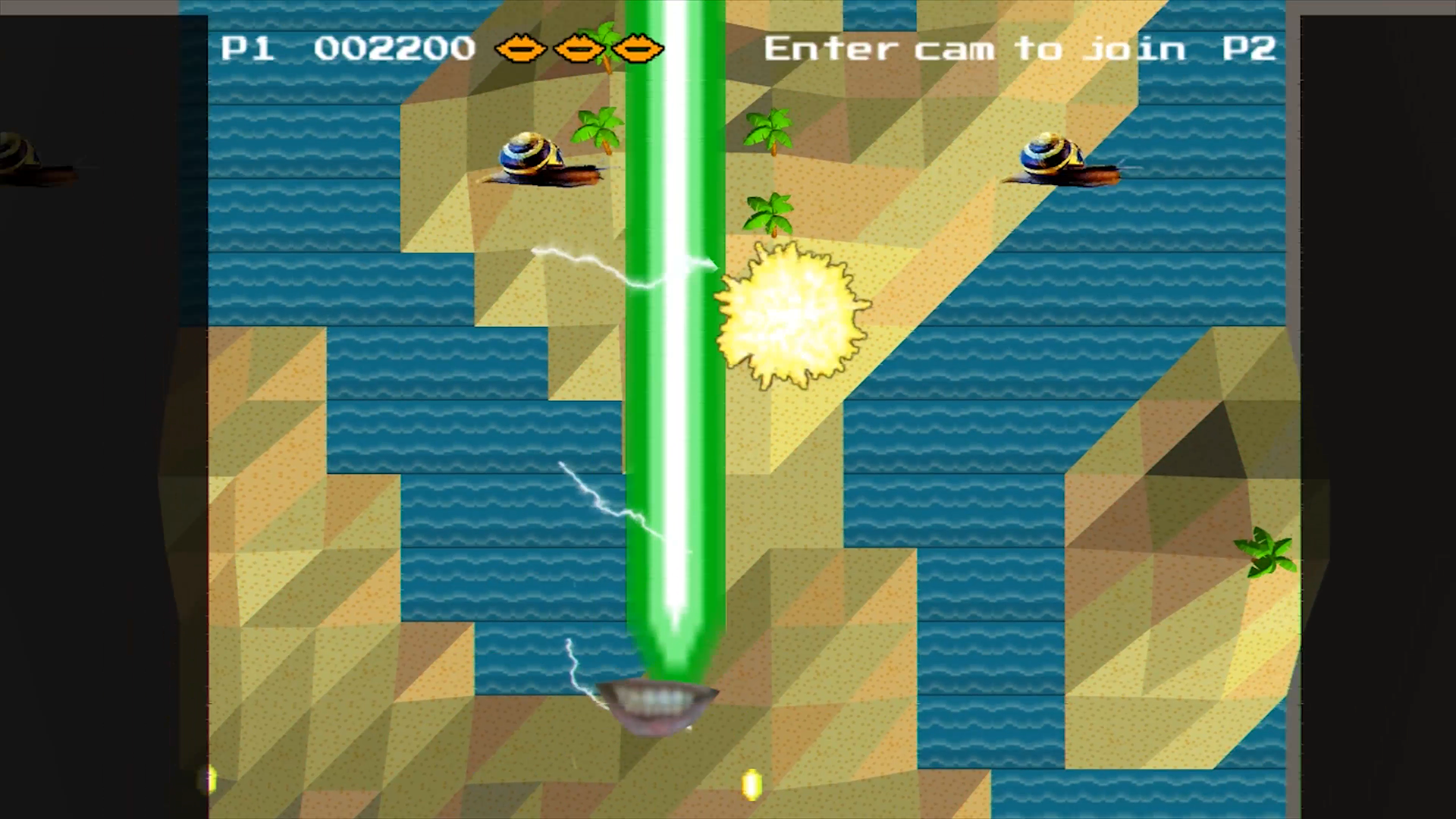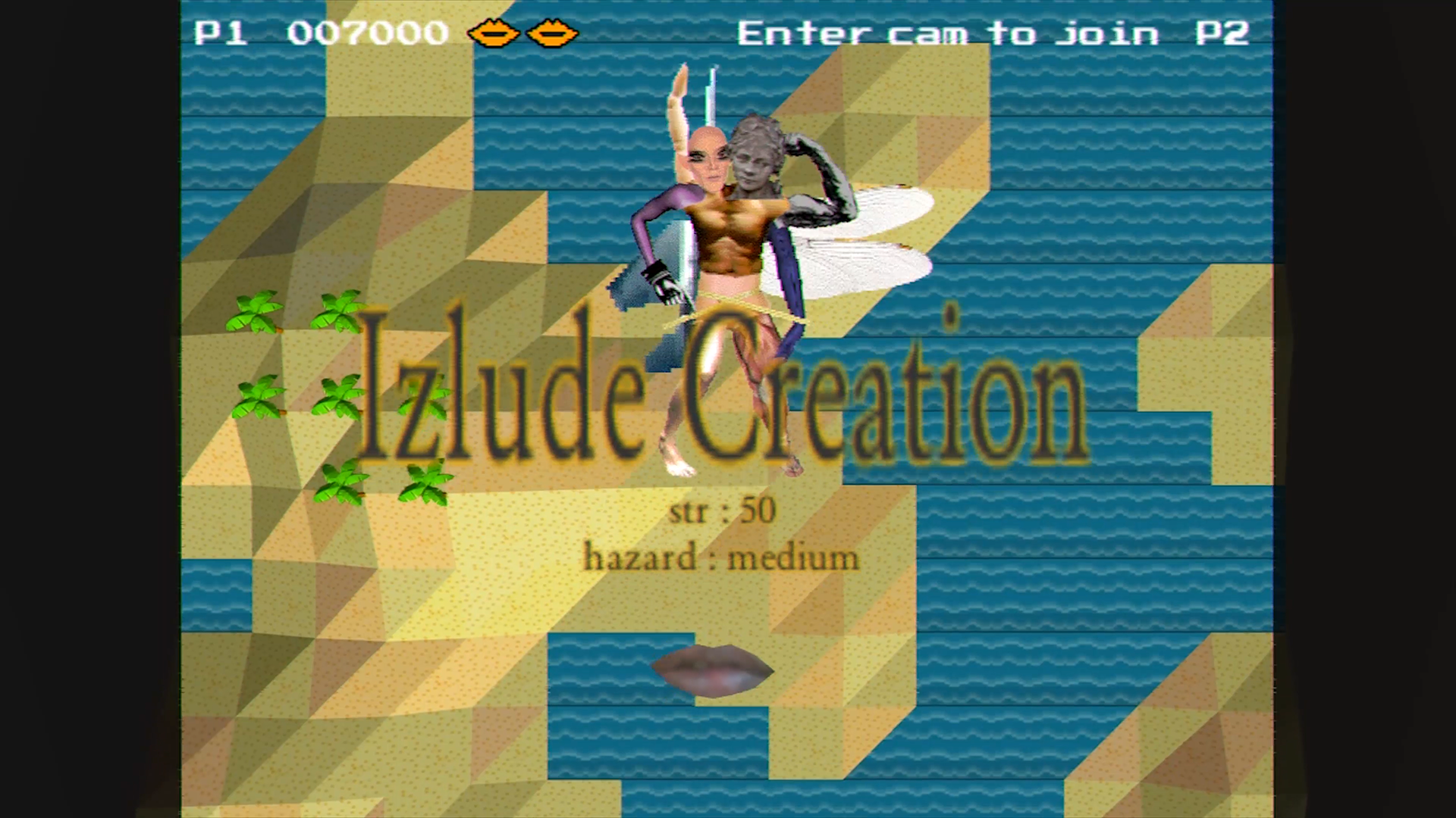 This game utilizes the webcam as the players’ mouths become a main gameplay element. In a gameplay reminiscent to Space Invaders and the Strikers series, players must shoot down enemies that come from the top of the screen. What makes the game special is the action which triggers the shooting: players must make a kissing motion with their mouths to fire at these enemies.